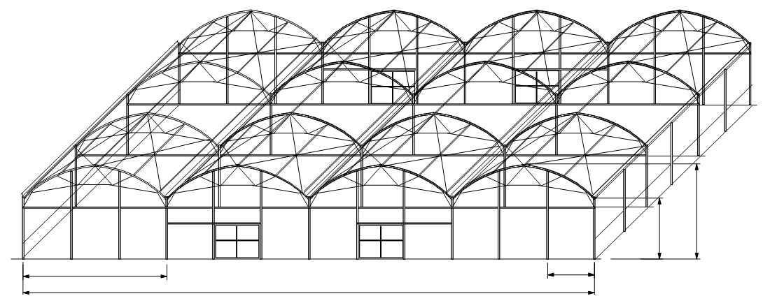 - Refuerzos internos cada 2 metros que sirven como soporte de malla de sombreo, mallas corredizas, riego por aspersión, sistema de iluminación, entutorado de plantas, macetas colgantes, mangas de calefacción etc.
